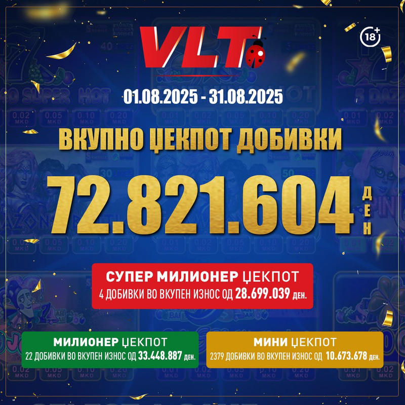 ПОВЕЌЕ ОД 12 И ПОЛ МИЛИОН ЕВРА, ВИДЕОЛОТАРИЈА ИМ ИСПЛАТИ НА ИГРАЧИТЕ НА ВЛТ ВО 2024